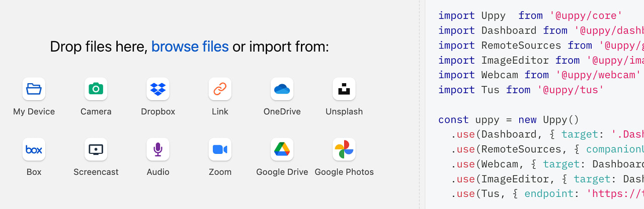 Uppy 5.0: A Powerful, Modular JavaScript File Uploader — Upload not just from local sources (whether files or a webcam) but also remote services like Dropbox or Google Drive. Integrates with frameworks like React, Vue, Svelte, and Angular, and supports resumable uploads too. GitHub repo.